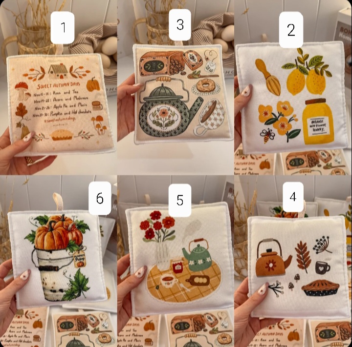 تکست1, سطل کدو6, قهوه3, قوری قهوه ای4, گل5, لیمو2 |